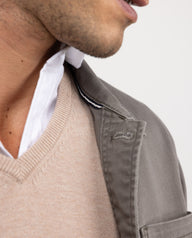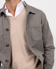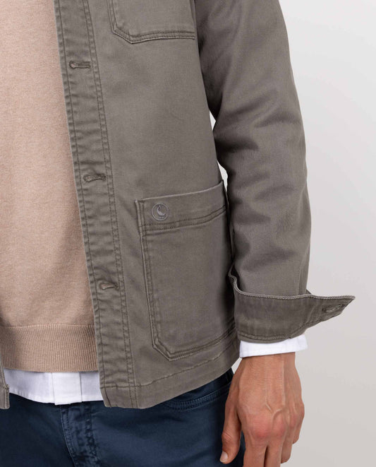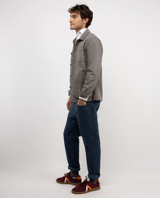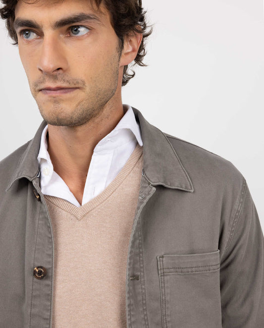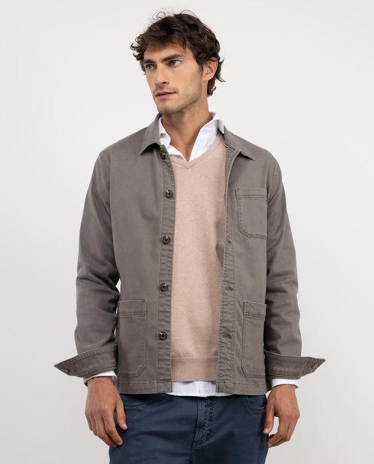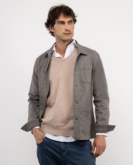 Sobrecamisa de hombre lisa confeccionada en 97% Algodón y 3% Elastano. Corte Regular Fit, cuello clásico, bolsillos tipo parche y cierre con botones. Manga larga y detalle de cinta de 3mm en el borde de la tapilla interior. Lleva logo bordado en uno de los bolsillos de parche. Esta prenda cuenta con un lavado enzimático que le dará un aspecto desgastado.
