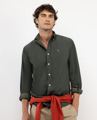 Camisa micropana de hombre confeccionada en tejido 100% algodón con lavado enzimático para darle mayor suavidad y color desgastado. Corte Regular Fit, cuello botón y cierre con botones y tapeta. Manga larga terminada en puño simple. Detalle de vivo liso en interior de cuello y puños. Logo bordado en el pecho.