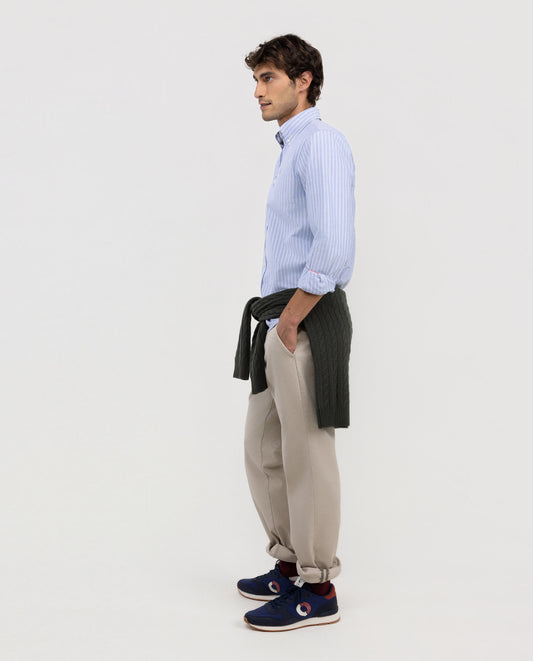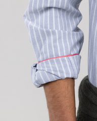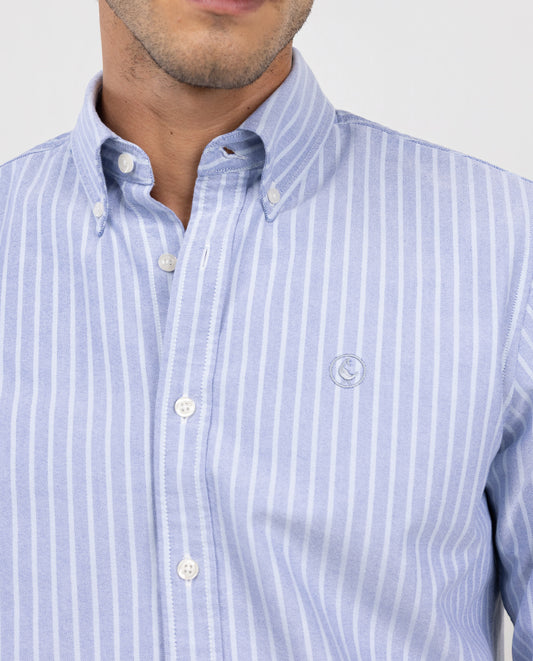 Camisa de hombre oxford rayas butcher con tejido más ligero gracias a su composición de 93% algodón orgánico BCI y 7% algodón reciclado. Incluye un lavado "Secret Wash" que confiere a las prendas un tacto suave y una imagen más vintage. Corte Regular Fit, cuello buttondown y cierre con botones. Manga larga terminada en puño simple y logo en el pecho bordado. Detalles interiores a contraste de cinta corbatera.