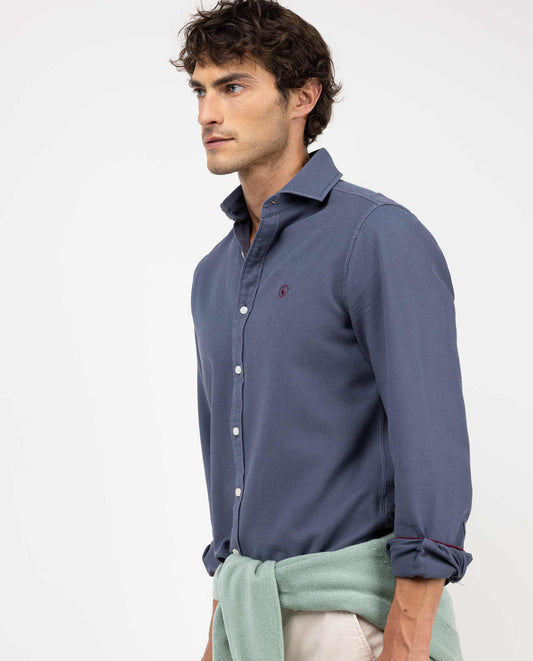 Camisa Estructura Algodón Gris Azulado