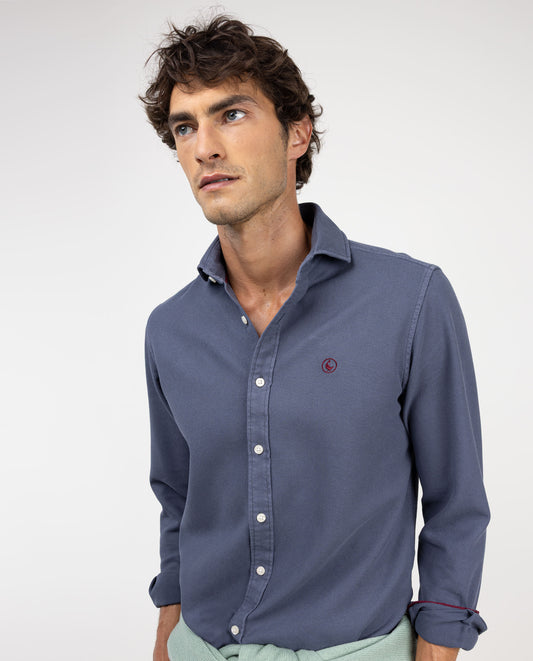 Camisa lisa de hombre confeccionada en 100% algodón, Corte Regular Fit, cuello italiano y cierre con botones. Manga larga terminada en puño simple y logo en el pecho bordado.