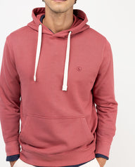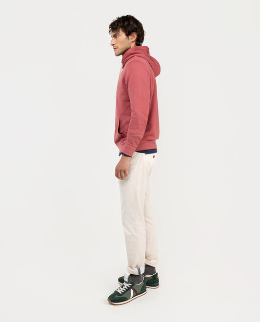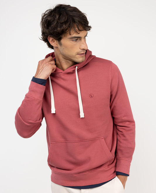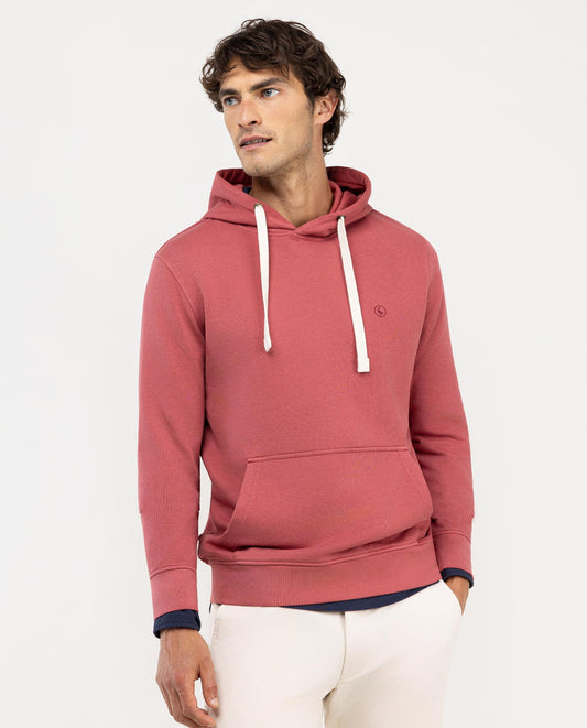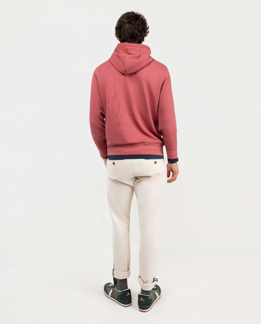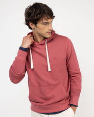Sudadera de hombre confeccionada en tejido 100% algodón. Corte regular fit con capucha ajustable y cordones al tono. Bolsillos de canguro con cierre de cremallera y manga larga. El tirador de la cremallera lleva nuestra cinta de bandera. Logo bordado en el pecho a tono.