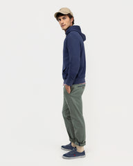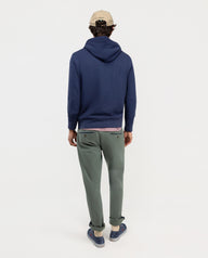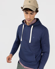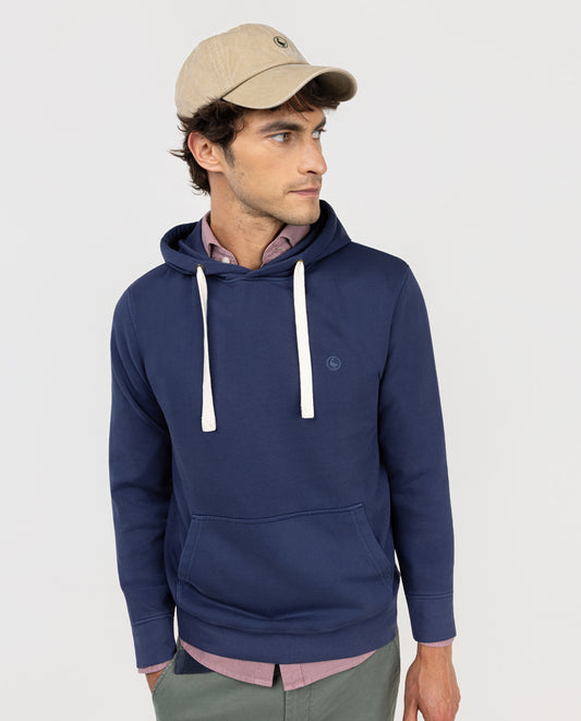Sudadera de hombre confeccionada en tejido 100% algodón. Corte regular fit con capucha ajustable y cordones al tono. Bolsillos de canguro con cierre de cremallera y manga larga. El tirador de la cremallera lleva nuestra cinta de bandera. Logo bordado en el pecho a tono.