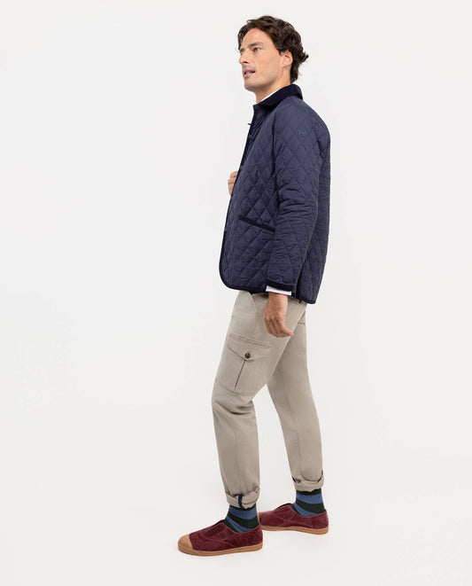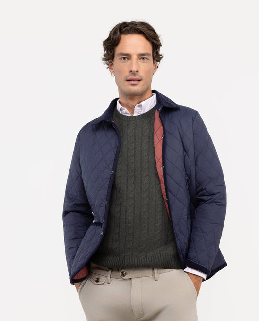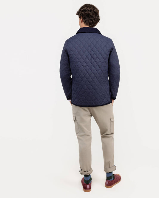 Chaqueta de hombre acolchada guateada, ligera y con cuello de pana. Relleno interior de Repreve. Corte Regular fit para un uso más cómodo. Botones a presión. Bolsillos parche y logo en manga. Resistente al agua y al viento.