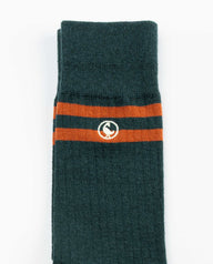 Calcetines unisex de rayas. Confeccionados con lana. Son de caña media con un alto de 28cm. Detalles a contraste en puntera y talonera. Lleva logo bordado en la parte superior.