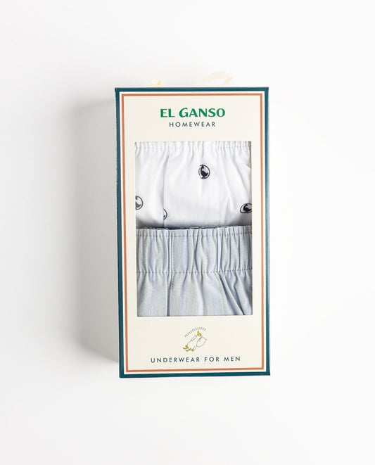 Pack Boxer Plana Liso Blanco Estampado Gansos Raya Butcher Verde