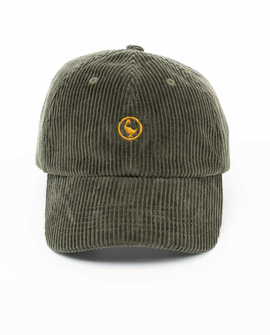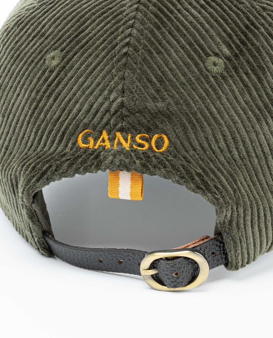 Gorra unisex lisa de pana confeccionada en tejido de 100% algodón. Cierre trasero ajustable de piel marrón y hebilla en oro viejo. Logo bordado a contraste en la parte frontal y letras Ganso bordadas en la parte posterior.