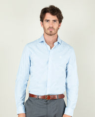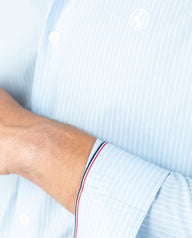 Camisa popelín de hombre. Raya Bengal confeccionada en 100% algodón. Corte Slim Fit, cuello italiano con ballenas. Manga larga terminada en puño simple y logo en el pecho bordado. | Better Cotton Initiative. La misión de Better Cotton es ayudar a las comunidades algodoneras a sobrevivir y prosperar, mientras se protege y restaura el medio ambiente.